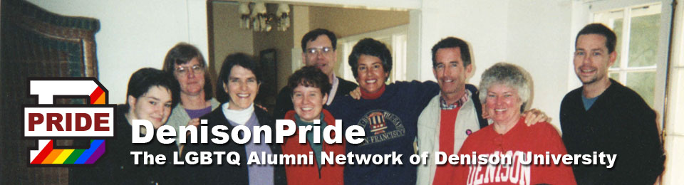 Denison Pride was founded in 1988 as the Denison Gay, Lesbian, and Bisexual Alumni/ae Association (GLBAA). With the help of supportive Denison faculty, several alums organized the group after a multi-class-year alumni Common Hour panel entitled “Out After Denison,” where alums shared our stories of life at and after Denison.